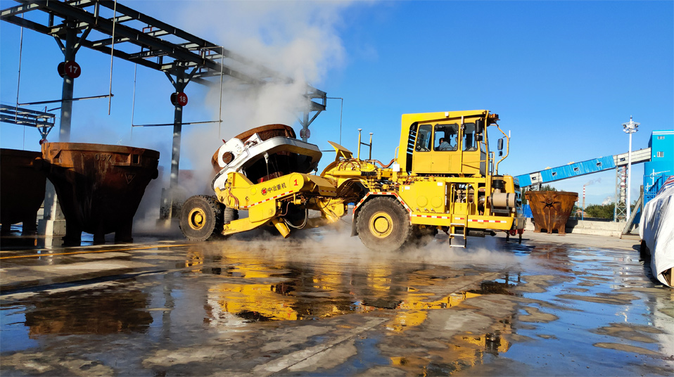 由中冶寶鋼研制的70噸鉸接式抱罐車(chē),采用鵝頸鉸接型式,額定載重75噸,重載最高時(shí)速為每小時(shí)20公里,翻罐角度105度,最大爬坡能力8%,最小轉(zhuǎn)彎半徑9米。該車(chē)型應(yīng)用專利技術(shù)10項(xiàng),在國(guó)內(nèi)有色冶煉市場(chǎng)占有率超過(guò)75%,先后榮獲中國(guó)有色工業(yè)協(xié)會(huì)、中國(guó)鋼鐵工業(yè)協(xié)會(huì)科技獎(jiǎng),中國(guó)施工企業(yè)管理和中國(guó)循環(huán)經(jīng)濟(jì)協(xié)會(huì)專利獎(jiǎng)等榮譽(yù)。